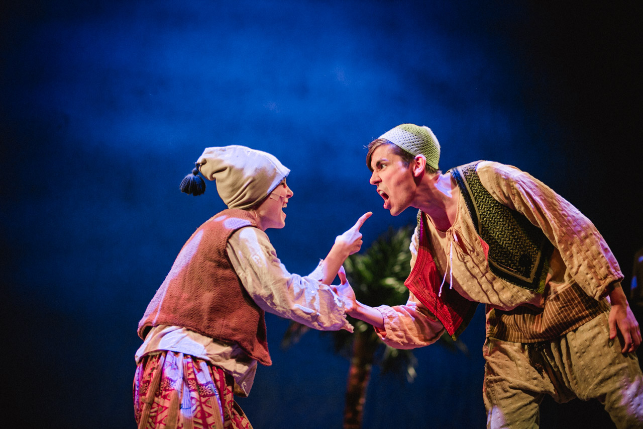 Der Heimweg führt Aladdin am Strand vorbei. Dort trifft er ein Mädchen in das er sich sofort verliebt und lädt sie zu sich nach Hause ein. Danach erfährt er, dass sie Jasmin, die Tochter des Sultans ist und weil er sich vor ihr für sein ärmliches Leben schämt, lässt er sich von seinem Lampengeist einen Palast bauen und in feinste Kleidung hüllen. Doch dann gerät die Wunderlampe in die Hände Dschafars und Aladdin muss einsehen, dass zur wahren Liebe mehr gehört als Pracht und teure Gewänder…